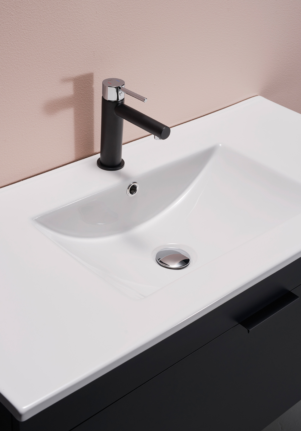 Tvättställ i porslin med tunn kant, ho med rektangulär form och rejäl volym, stora avställningsytor samt överfyllnadsskydd. Köp till med bottenventil för handfat med överfyllnadsskydd, finns i flera kulörer för att matcha din blandare.