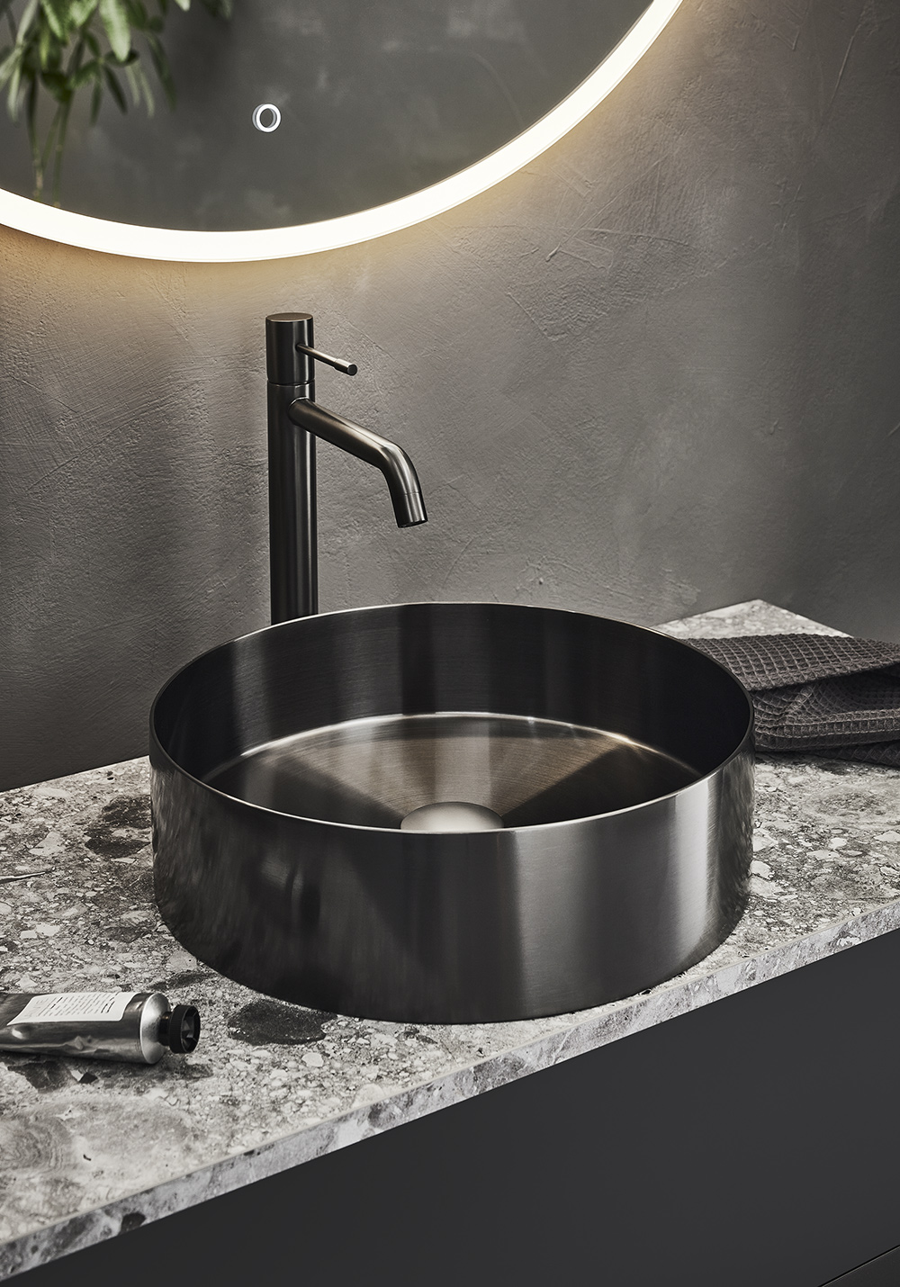 Tvättställsblandare Hafa Fine Hög Borstad Svartkrom