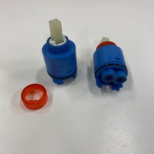 Insats (diameter 40 mm hög modell) för reglering av/på och varmt/kallt vatten på engreppsblandare. Totalhöjd 79mm. Den röda hylsan är endast ett transportskydd och är avtagbar. Säljs styckvis.