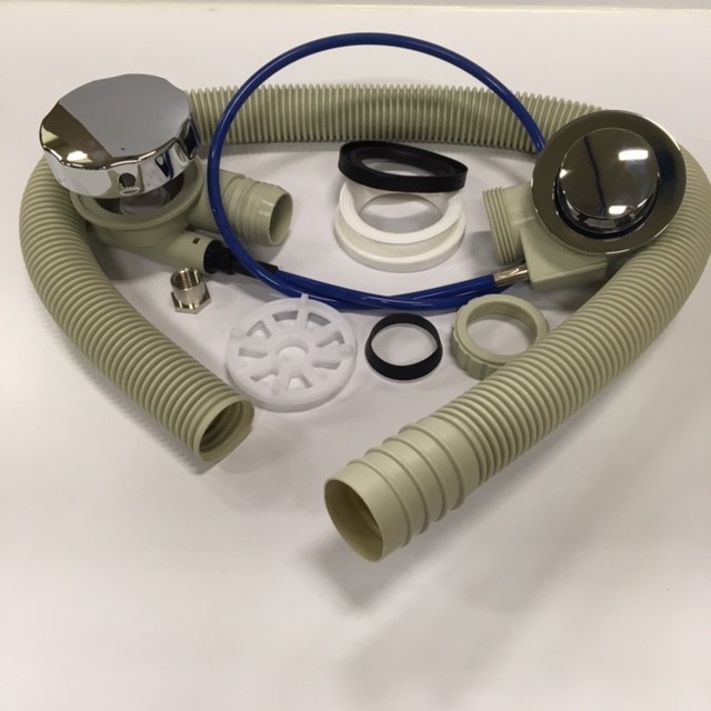 Avloppssats till äldre modeller av massagebadkar med insug i sidan av karet. Ersätter avloppssatsen 80000610.