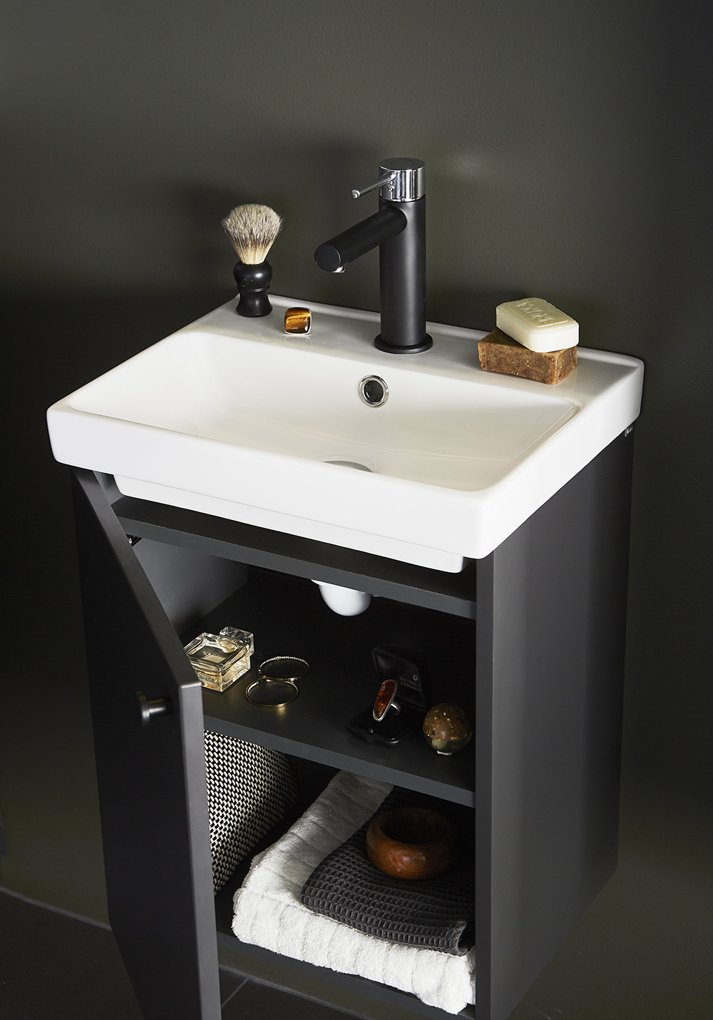 Tvättställsskåp Neat Lucka Med Tvättställ Antracit 420