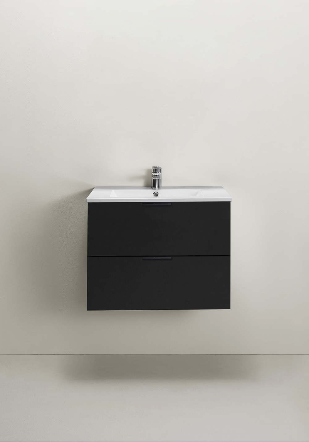 Hafa Go tvättställsskåp är praktiska och stilrena badrumsmöbler med släta fronter. Komplettera med tvättställ och sätt din stil genom att komplettera med något av våra handtag. Två mjukstängande lådor med fullutdrag ger bra överblick över innehållet.