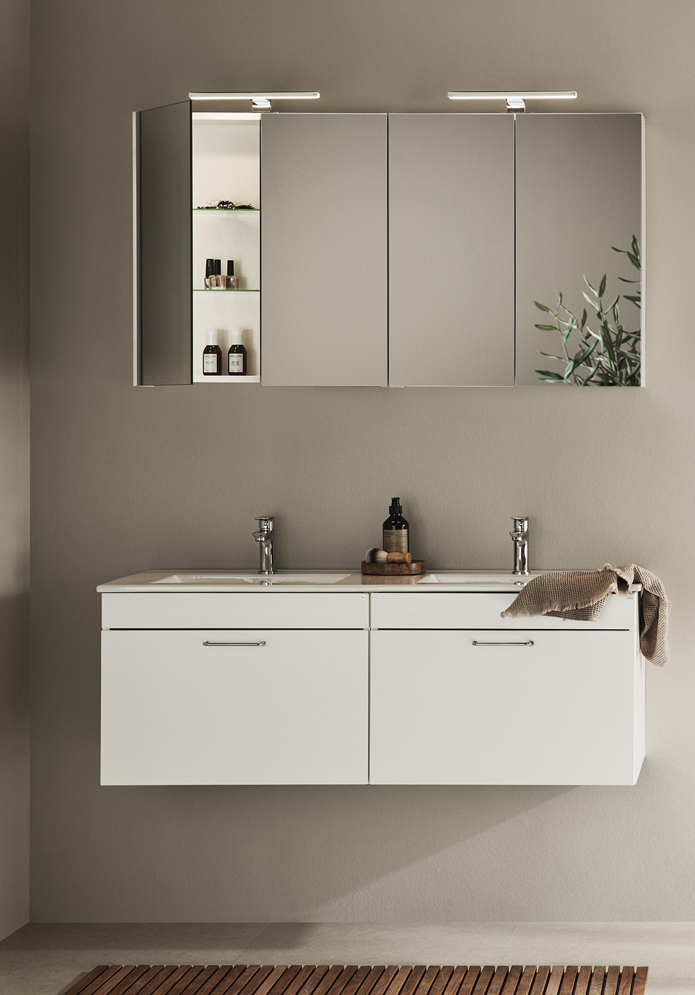 Tvättställsskåp med mjukstängande låda som ger generös förvaring. Tvättställsskåpet är enkelt att installera för en person med skena på vägg. Hafa Go badrumsskåp finns i flera bredder och färger. Förberett för både vägg- och golvavlopp i bakkant för enkel montering. Justerbara upphängningsbeslag. Komplettera med nedsänkt handfat och PUM-vattenlås för kommod, 126 56 00. Sätt din personliga stil på ditt badrumsskåp med ett av våra handtag eller knoppar.
