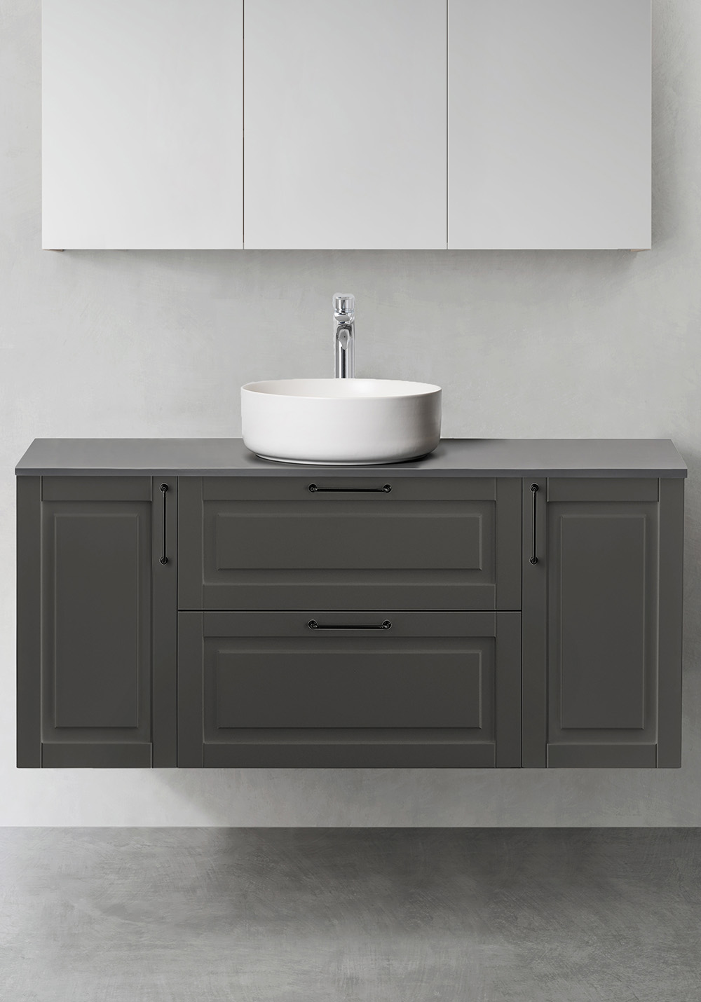 Hafa Grace är badrumsmöbler med vackert profilerade fronter utformade för att passa i såväl ett lantligt som ett modernt badrum i skandinavisk stil. Mjukstängande lådor med fullutdrag ger bra överblick över innehållet. Lådmattor och lådinredning av bambu hjälper till att hålla ordning. Badrumsskåpet är färdigmonterat och enkelt att installera med justerbara upphängningsbeslag och utrymme förberett för både vägg- och golvavlopp. Grace tvättställsskåp finns i flera bredder från 600 upp till 1200 och i två matta kulörer - vitt och antracit. Sidomodulen ger möjlighet att skapa ytterligare varianter att kunna kombinera en badrumsmöbel som passar just ditt badrum. Välj handtag eller knopp som passar din stil och komplettera med fristående handfat på en bänkskiva eller nedsänkt tvättställ i porslin. Köp till blandare, bottenventil, vattenlås, lådbelysning och eluttag.