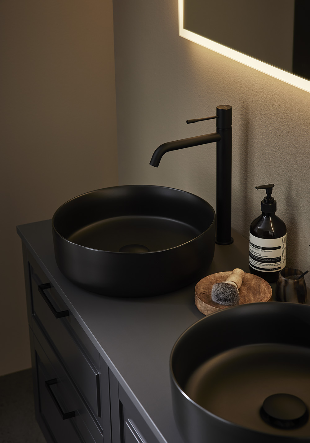 Hafa Grace är badrumsmöbler med vackert profilerade fronter utformade för att passa i såväl ett lantligt som ett modernt badrum i skandinavisk stil. Mjukstängande lådor med fullutdrag ger bra överblick över innehållet. Lådmattor och lådinredning av bambu hjälper till att hålla ordning. Badrumsskåpet är färdigmonterat och enkelt att installera med justerbara upphängningsbeslag och utrymme förberett för både vägg- och golvavlopp. Grace tvättställsskåp finns i flera bredder från 600 upp till 1200 och i två matta kulörer - vitt och antracit. Sidomodulen ger möjlighet att skapa ytterligare varianter att kunna kombinera en badrumsmöbel som passar just ditt badrum. Välj handtag eller knopp som passar din stil och komplettera med fristående handfat på en bänkskiva eller nedsänkt tvättställ i porslin. Köp till blandare, bottenventil, vattenlås, lådbelysning och eluttag.