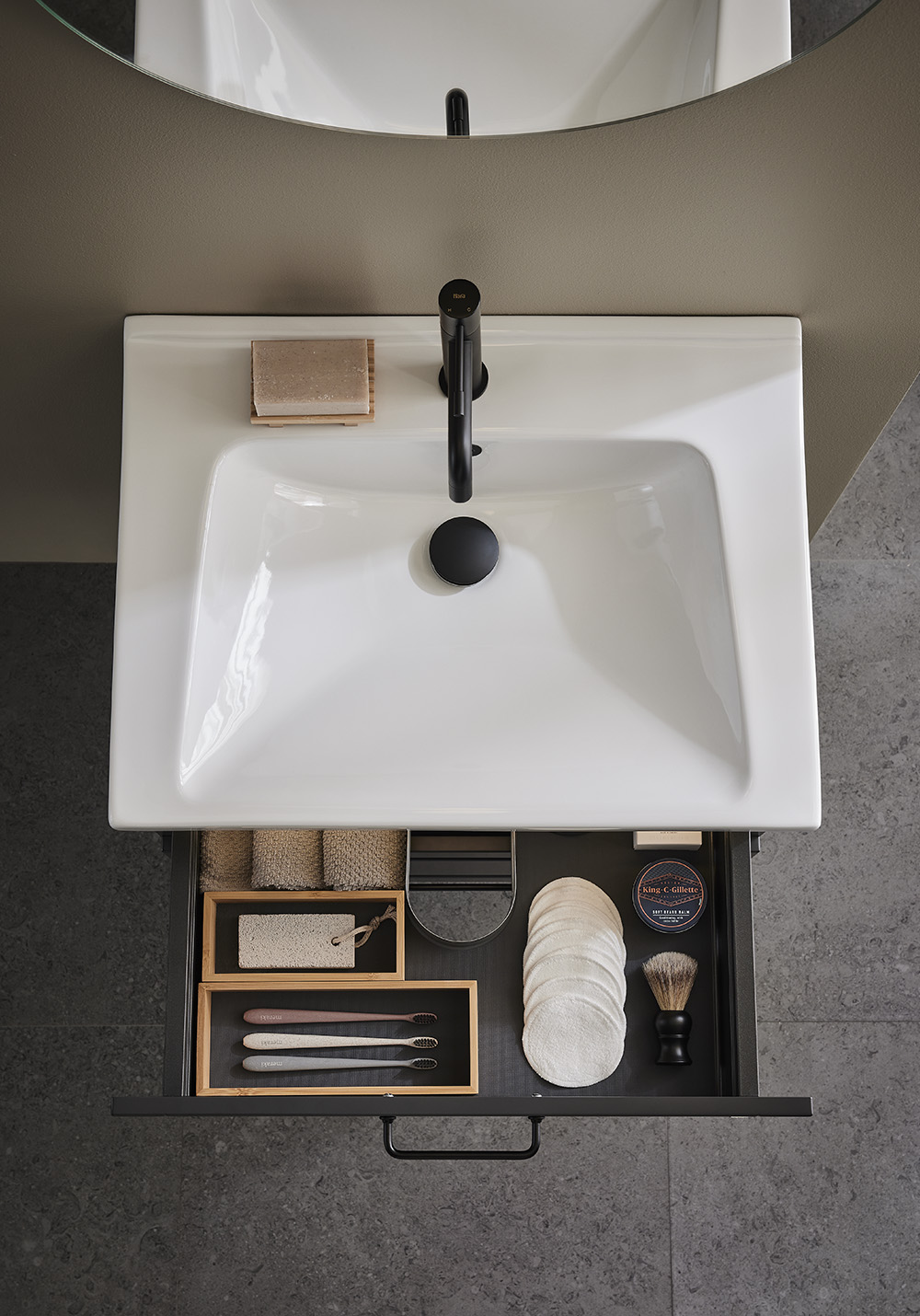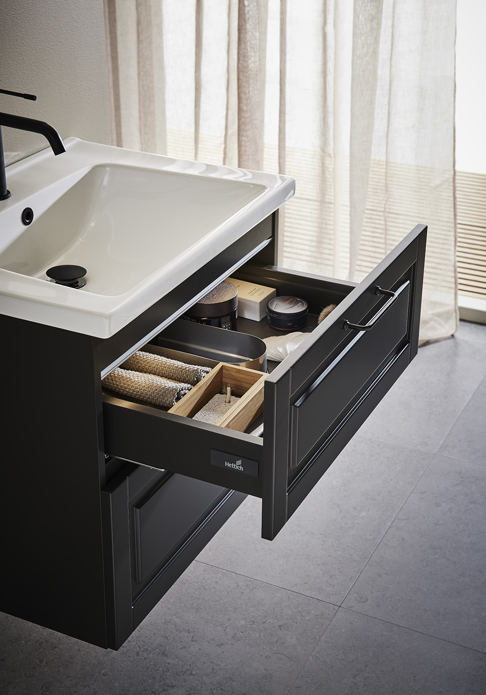 Hafa Grace är badrumsmöbler med vackert profilerade fronter utformade för att passa i såväl ett lantligt som ett modernt badrum i skandinavisk stil. Mjukstängande lådor med fullutdrag ger bra överblick över innehållet. Lådmattor och lådinredning av bambu hjälper till att hålla ordning. Badrumsskåpet är färdigmonterat och enkelt att installera med justerbara upphängningsbeslag och utrymme förberett för både vägg- och golvavlopp. Grace tvättställsskåp finns i flera bredder från 600 upp till 1200 och i två matta kulörer - vitt och antracit. Sidomodulen ger möjlighet att skapa ytterligare varianter att kunna kombinera en badrumsmöbel som passar just ditt badrum. Välj handtag eller knopp som passar din stil och komplettera med fristående handfat på en bänkskiva eller nedsänkt tvättställ i porslin. Köp till blandare, bottenventil, vattenlås, lådbelysning och eluttag.