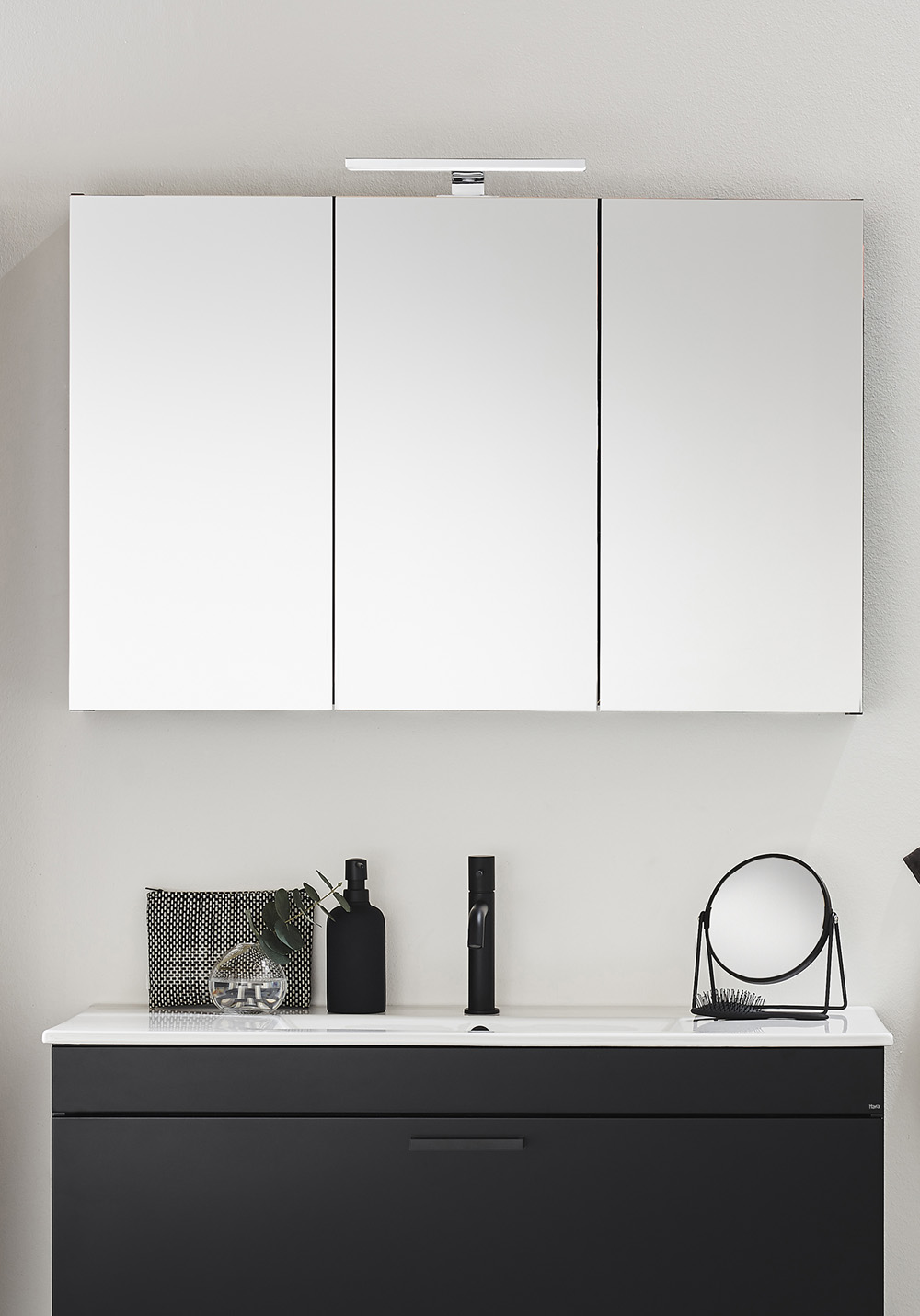 - Spegelskåp med dubbelsidiga speglar och 2 justerbara hyllor i klarglas