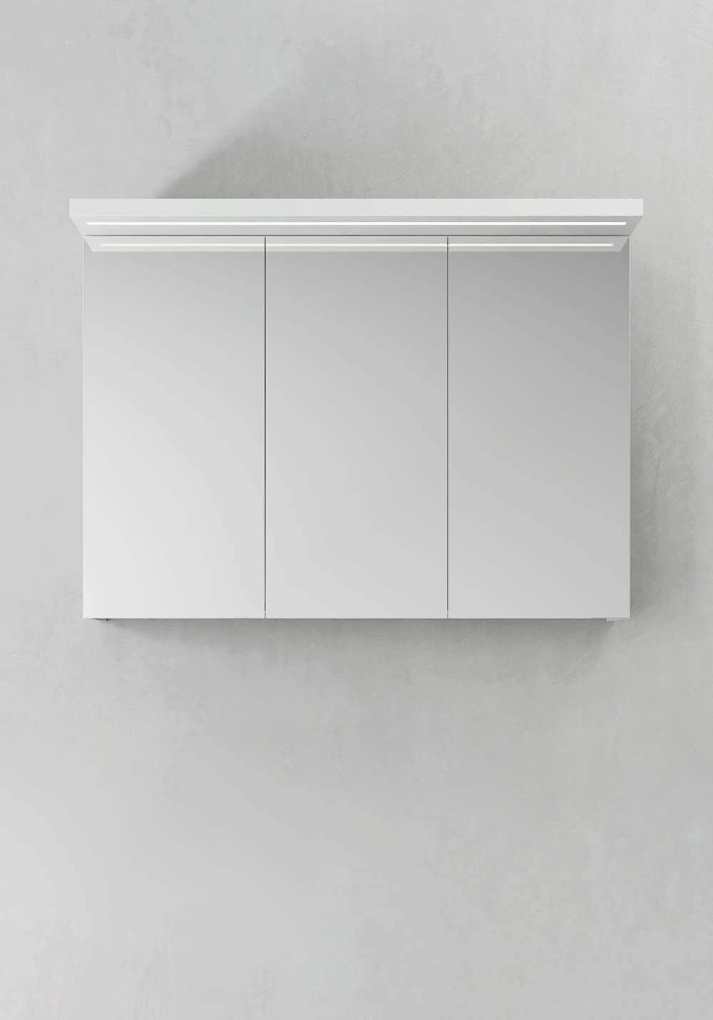 Spegelskåp med funktionell belysning med infälld LED-profil eller LED-spots i varmvitt ljus. Mjukstängande, dubbelsidiga spegeldörrar. Eluttag inuti skåpet på höger sida och med flyttbara hyllplan i glas med hyllbärare som låser dem säkert på plats. Enkel installation för en person med hel upphängningsskena och justerbara upphängningsbeslag. Förberett för enkel el-installation. IP44.