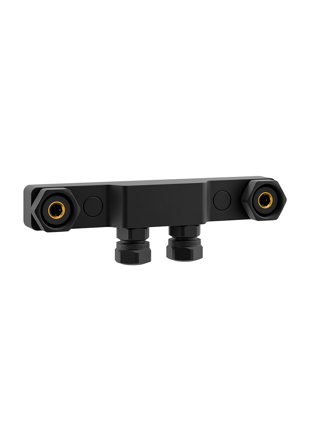 Mattsvart blandarfäste för utanpåliggande rördragning med anslutningsrör i cc40. Tillverkad i mässing. Anslutning mot blandare M26x1,5 och anslutning till inlopp G15, för både plan- och kontätning. Modellen är vändbar. Inklusive kopplingar för 12 och 15mm Cu-rör. VVS-skruv och täcklock till skruvhålen ingår.