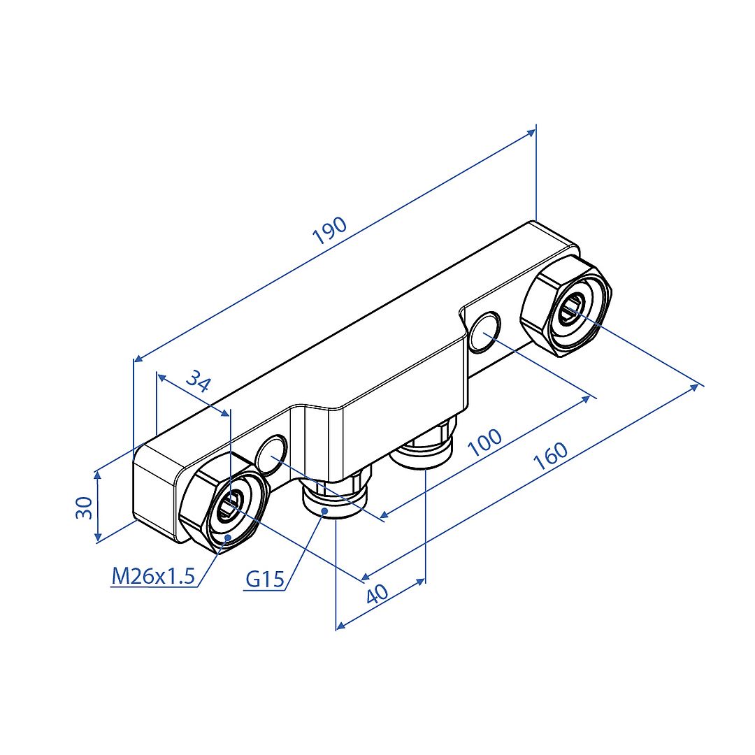 - Anslutning mot blandare M26x1,5 och anslutning till inlopp G15