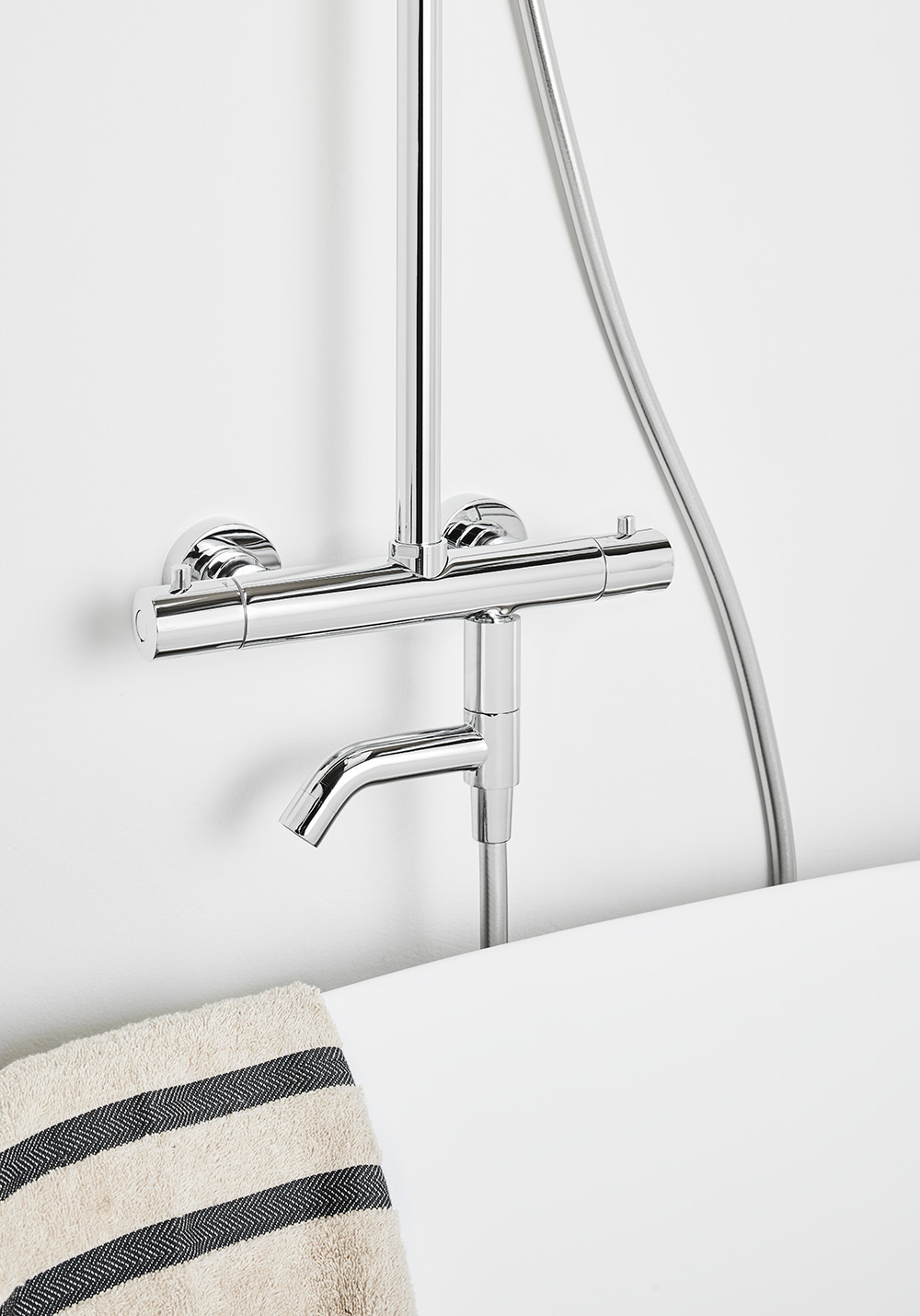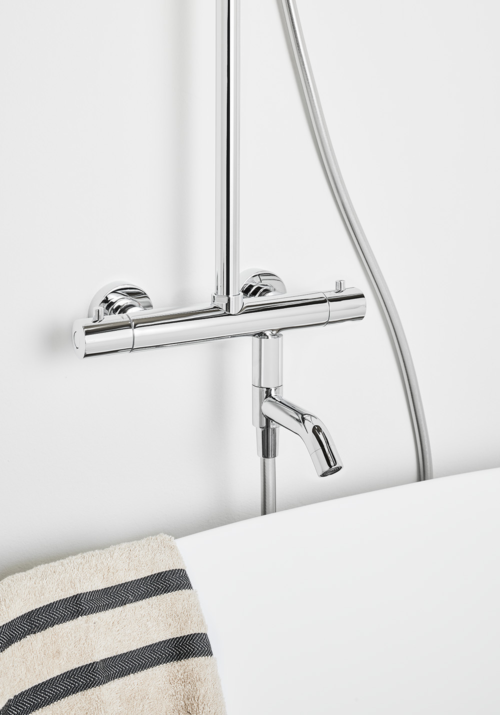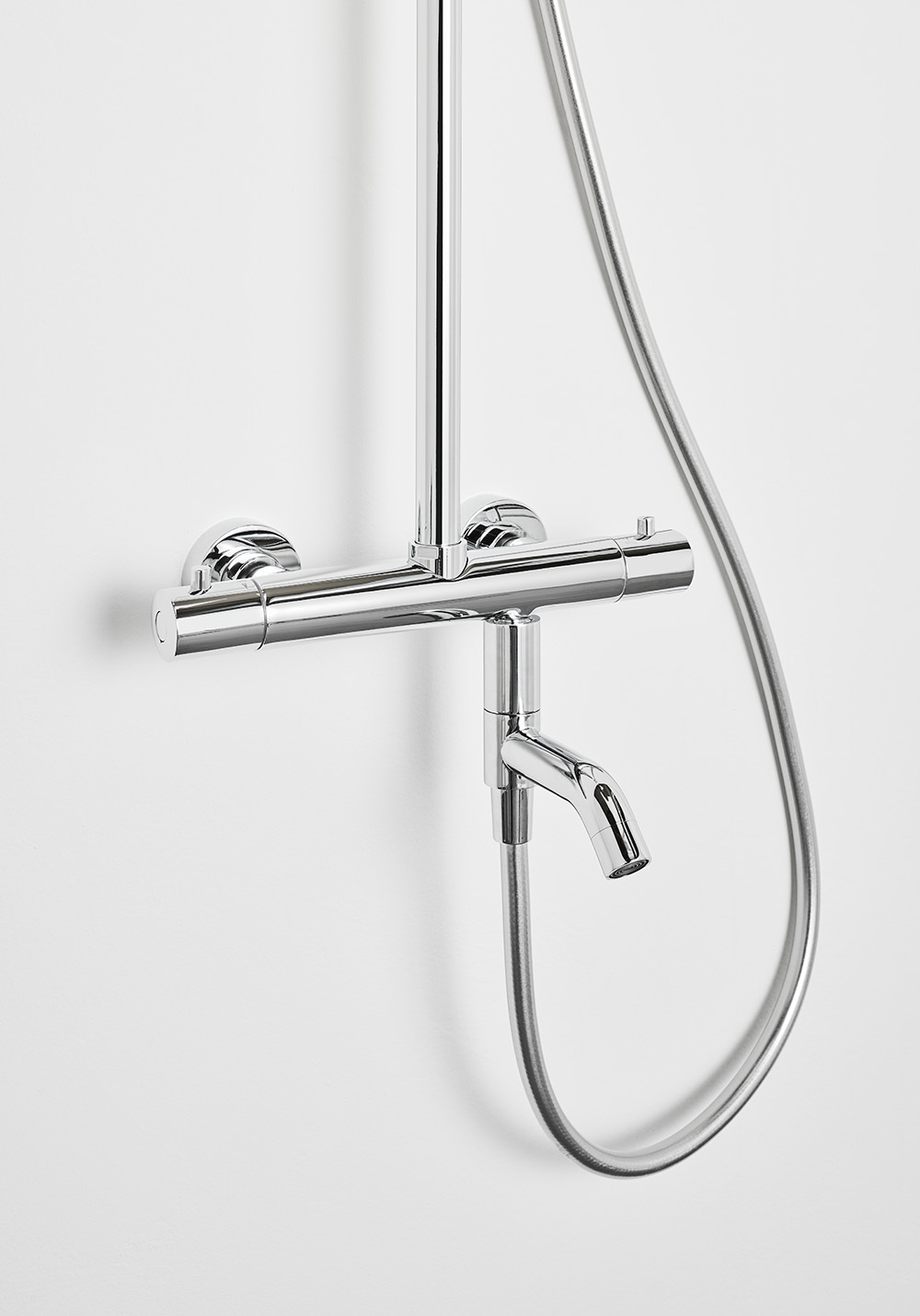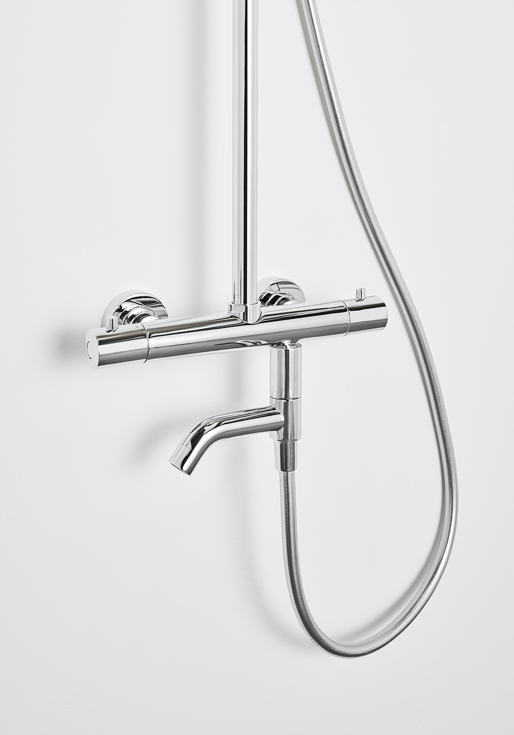 Med badkarspipen Add kan en vanlig duschblandare få en badkarspip med inbygg omkastare för att skifta vatten mellan pip och duschhandtag och som du kan svänga undan när du inte behöver den. Praktiskt när du skall hämta vatten till din bastu, eller i badkaret när du inte vill ha en badkarspip som är i vägen när du badar. Finns i krom och svart matt.
