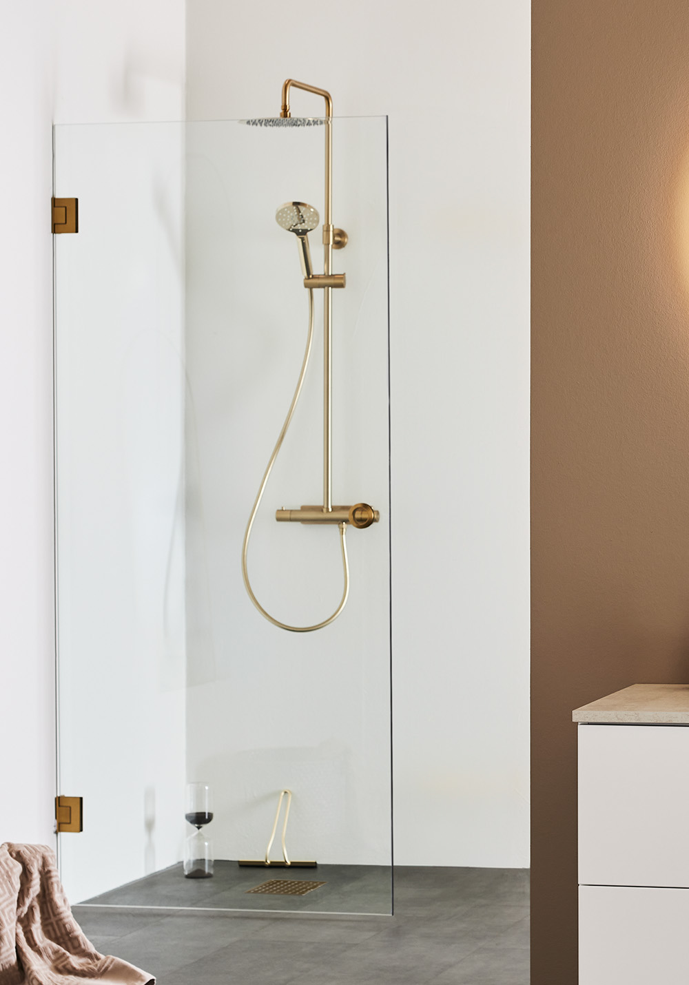 En exklusiv duschdörr med smäckra beslag och en elegant handtagslösning. Välj mellan tre färger, krom, matt svart eller borstad mässing. Ytan behåller sin vackra färg över tid. De stora glasytorna ger ett luftigt intryck och skapar en härlig rymd i badrummet. Dörren kan vikas in mot väggen när de inte används och ger därigenom möjlighet att skapa en lyxig dusch även i ett litet badrum. Dörren är vändbar så du kan välja vilken vägg den skall installeras på. Duschdörren kan kombineras med andra dörrar och väggar i Infinity-serien. Tänk på att Infinity saknar tätningslister som standard så ett korrekt golvfall blir extra viktig. Magnetlist ingår. Fullhöjd 2000 mm och med 8 mm härdat klart säkerhetsglas.