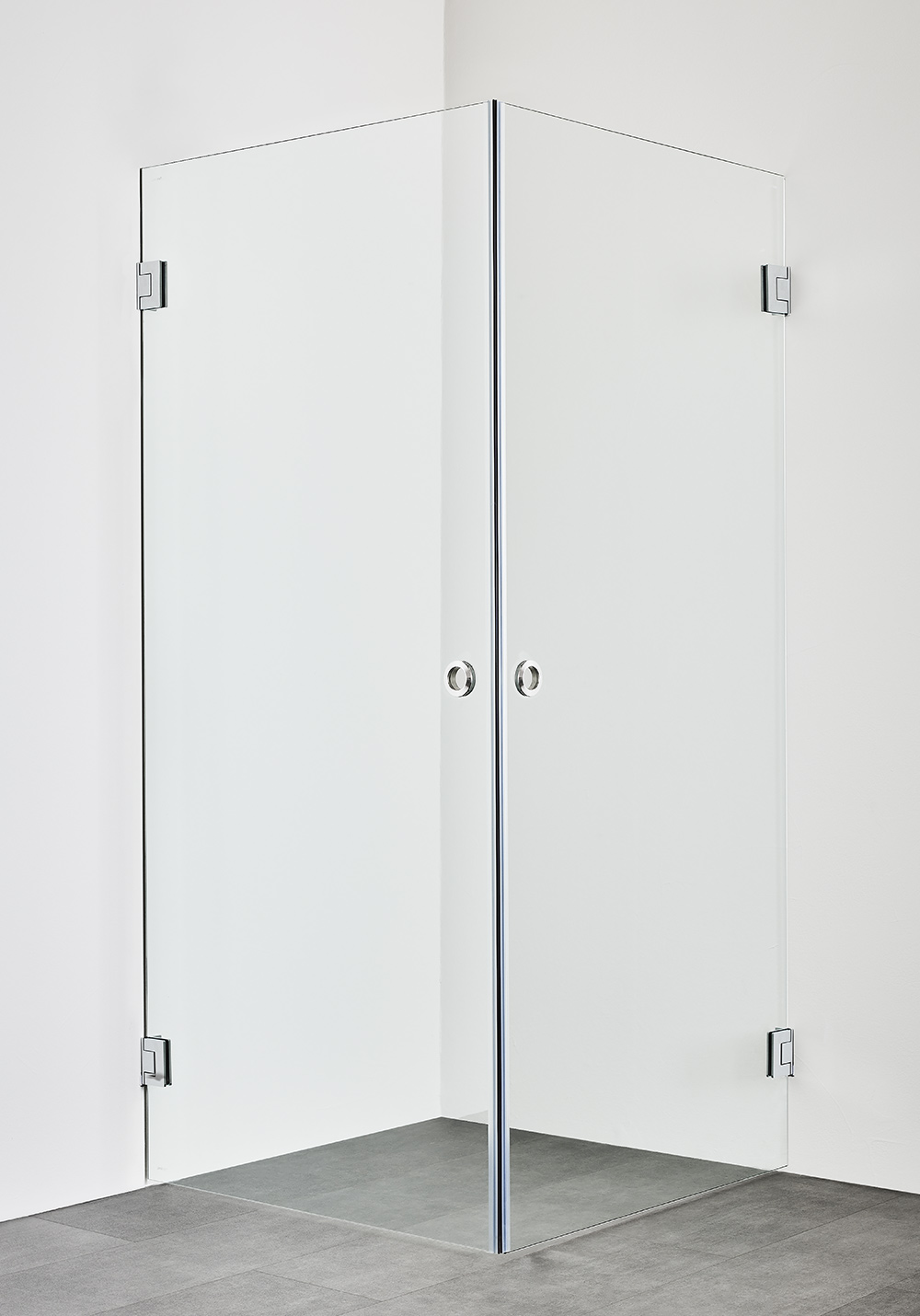 Exklusivt duschhörn med smäckra beslag och en elegant handtagslösning. Välj mellan tre färger, krom, matt svart eller borstad mässing. De stora glasytorna ger ett luftigt intryck och skapar en härlig rymd i badrummet. Dörrarna är vändbara och kan vikas in mot väggen när de inte används, vilket ger möjlighet att skapa en lyxig dusch även i ett mindre badrum. Tänk på att Infinity saknar tätningslister som standard så ett korrekt golvfall blir extra viktig. Magnetlist ingår. Fullhöjd 2000 mm och med 8 mm härdat klart säkerhetsglas.