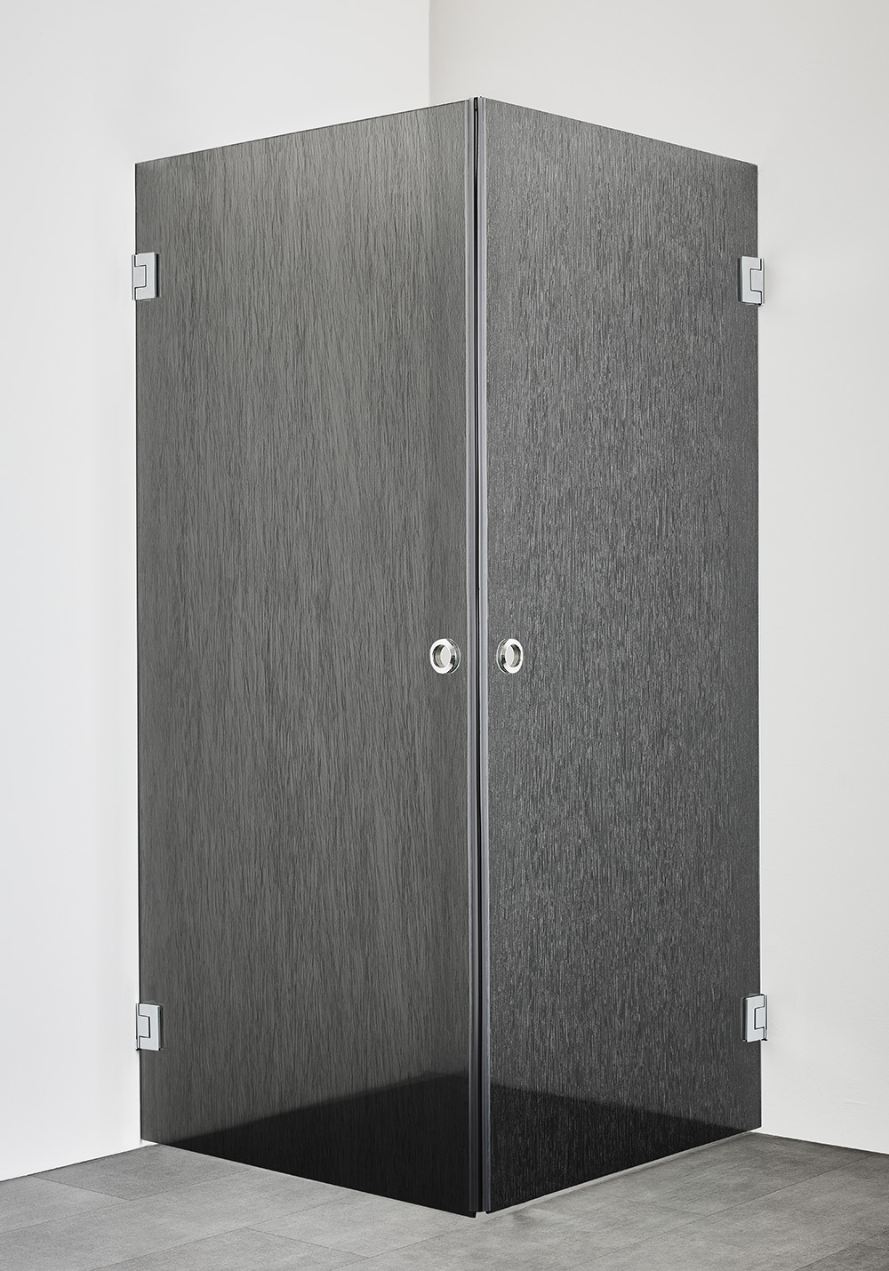 Exklusivt duschhörn med smäckra beslag och en elegant handtagslösning. Fullhöjd 2000 mm och med 8 mm härdat klart säkerhetsglas. Dörrarna är vändbara.