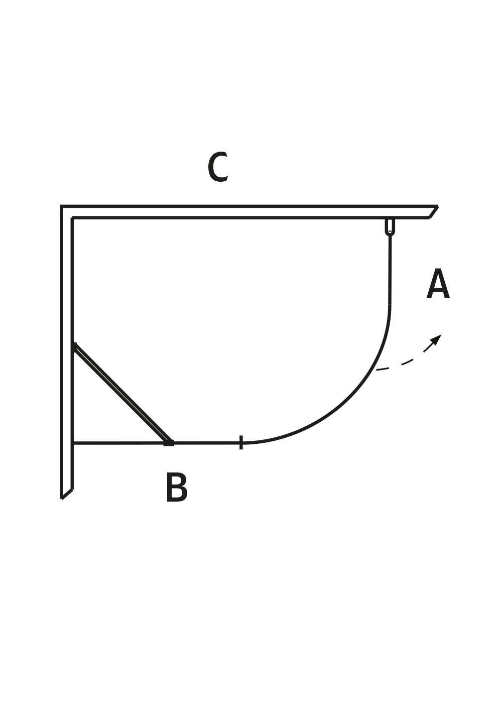 - Duschhörn med fast vägg och svängbar, J-formad duschdörr med profiler i aluminium