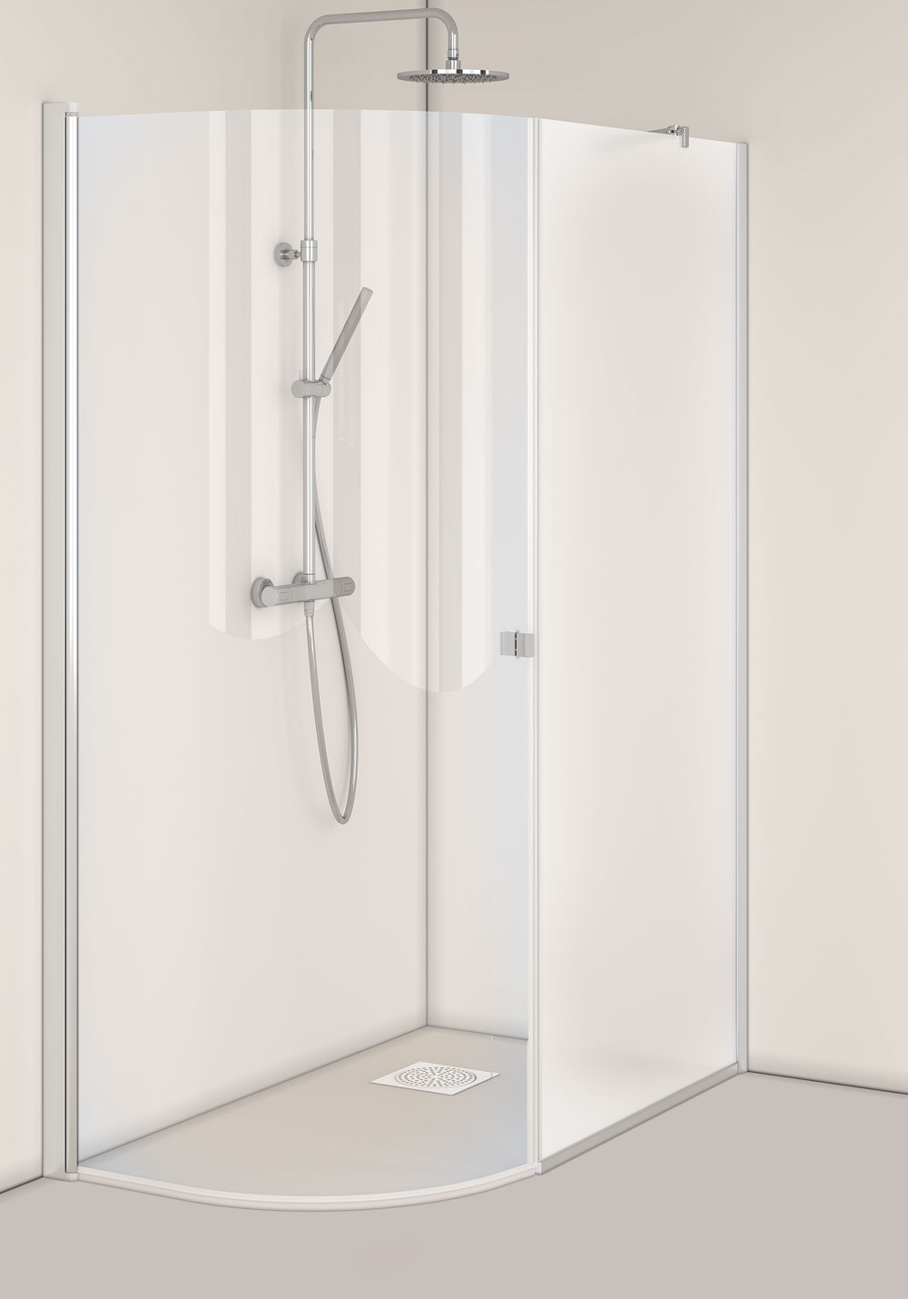 - Duschhörn med fast vägg och svängbar, rak duschdörr med profiler i aluminium