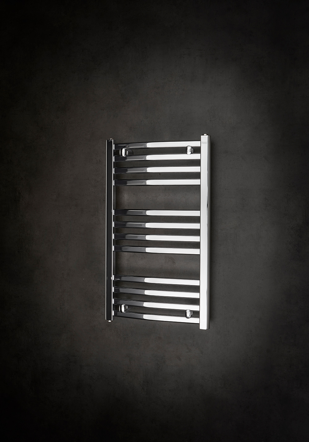 Handdukstork av ellipsformade kromade rör av stål. Handdukstorken ansluts antingen med elpatron eller till ett slutet radiatorsystem. En kombination av dessa två anslutningar ger dig en varm handdukstork året om. Handdukstorken Ellips finns i tre höjder och två bredder.
