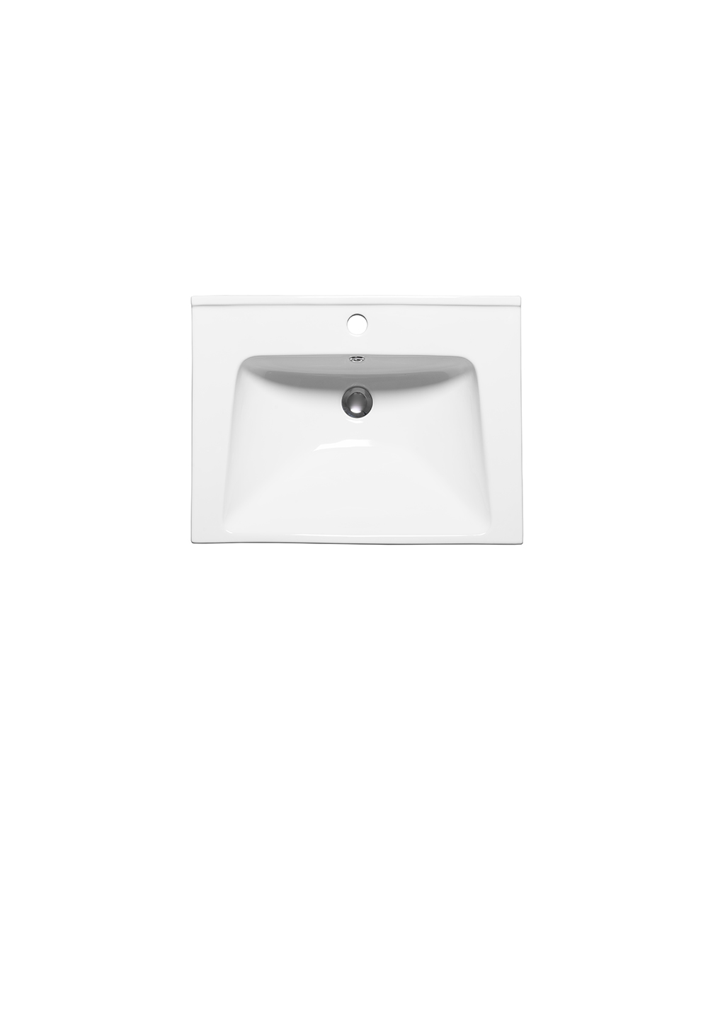 Modernt tvättställ i porslin med spänstig form som sträcker sig fram till kanten utvecklat av våra egna designers. Den unika formen harmonierar fint med tvättställsskåpets strikta linjer och på båda sidor finns det avställningsytor.