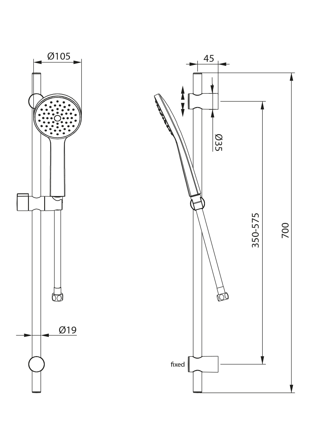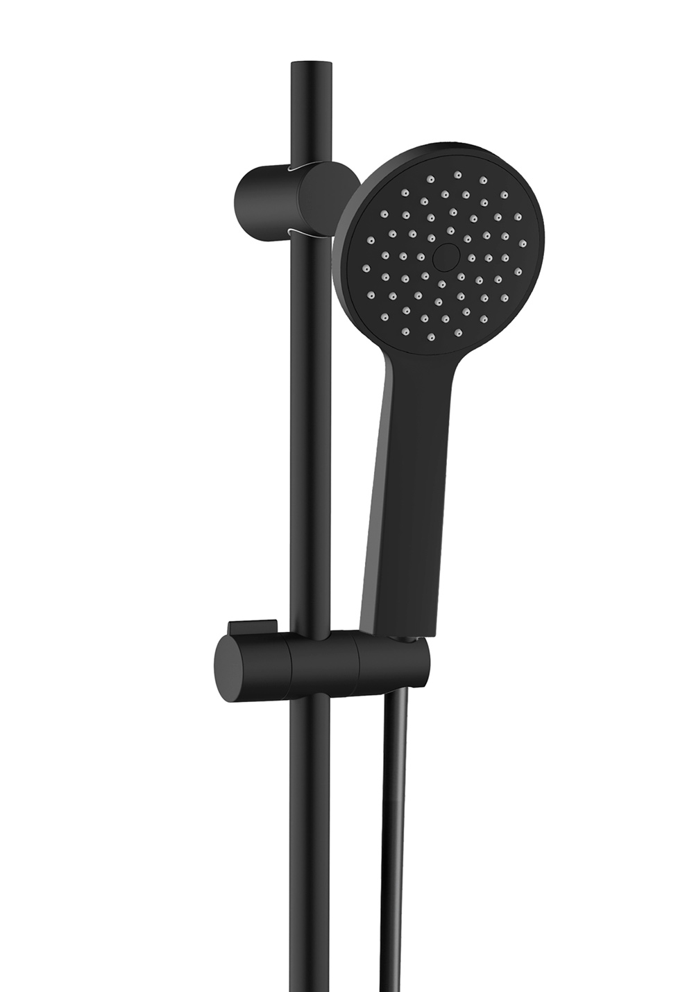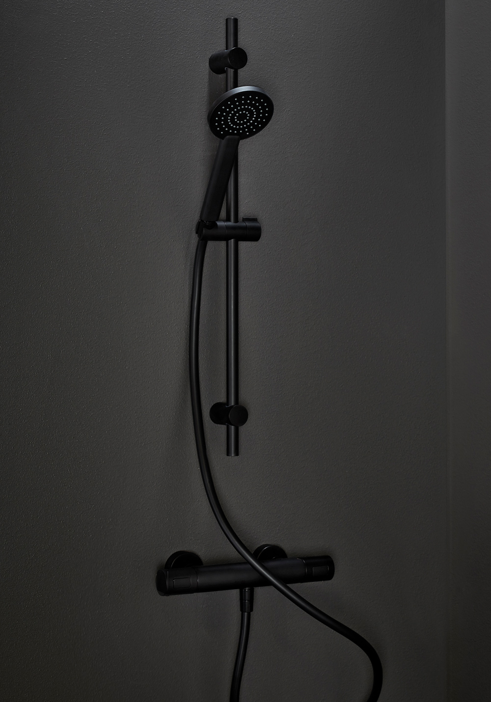 Smidigt och stilrent duschset i krom eller matt svart med duschstång av rostfritt stål och duschslang med AntiTwist. Greppvänligt smäckert duschhandtag med Water Save. Duschstång med justerbara väggfästen 350-575 mm. Kombinera duschset i matt svart med våra nya svarta Mix duschblandare.